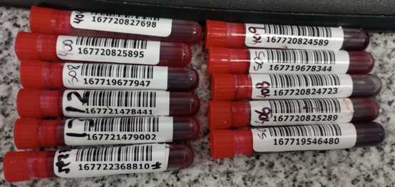 Muestras con nuestro Código de Barras tapados por la etiqueta de los laboratorios. Ejemplos de muestras con código de barras Qualium tapado: